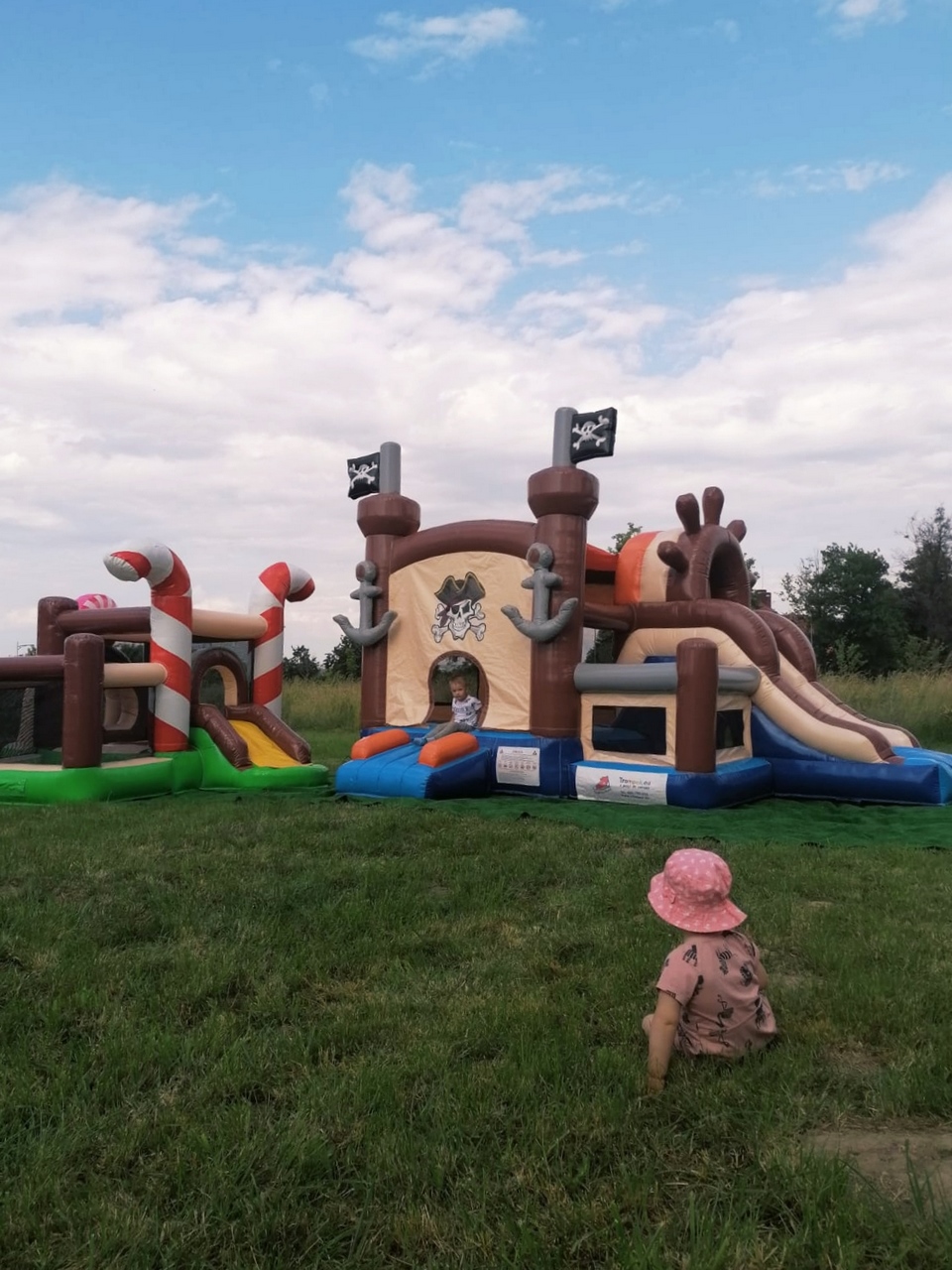 Dmuchany zamek piracki MINI combo to połączenie zjeżdżalni ze skakańcem w wersji mini – dla najmłodszych. Dzieci świetnie się na nim bawią – zjeżdżają, skaczą i wcielają się w role piratów.
