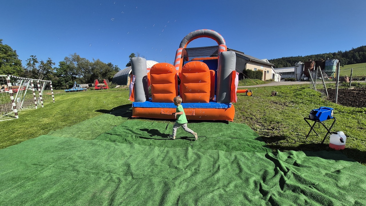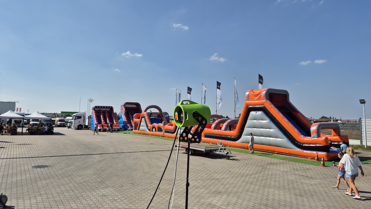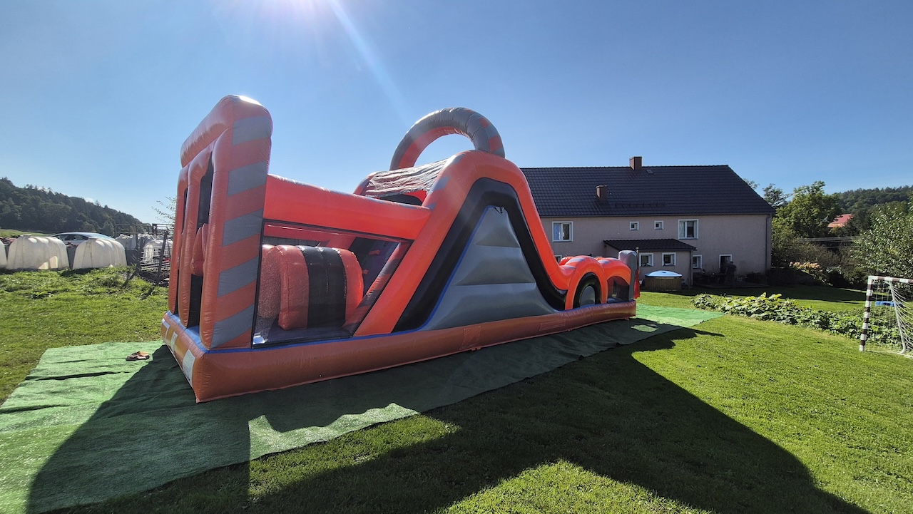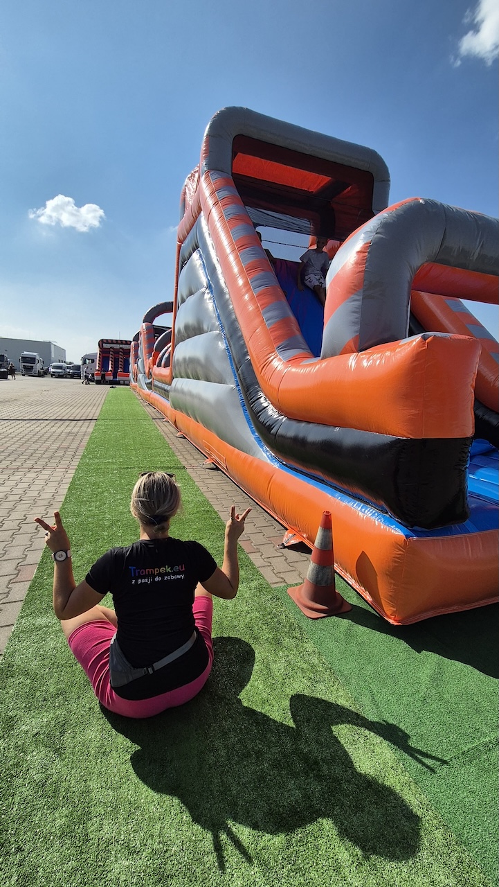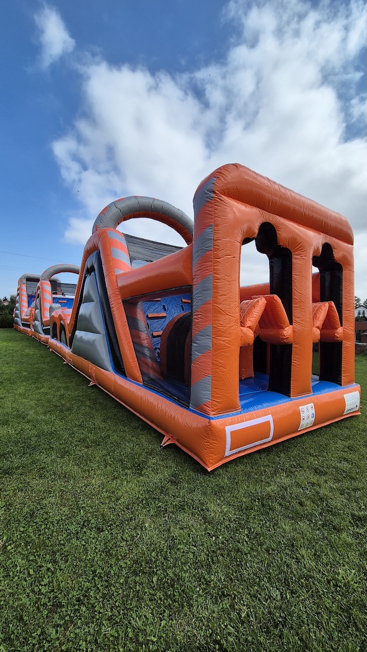 Mierzy aż 30 metrów i składa się z trzech części. Na każdej z nich spotkamy zjeżdżalnie oraz inne, dodatkowe atrakcje – łuki (pod którymi trzeba przejść), fragmenty ścianek wspinaczkowych, dmuchane okręgi, tuby (przez które trzeba przeskakiwać lub się w nich czołgać), dmuchane poprzeczki i słupki wyrastające z sufitu oraz podłogi (które utrudniają przejście i spowalniają zawodników).